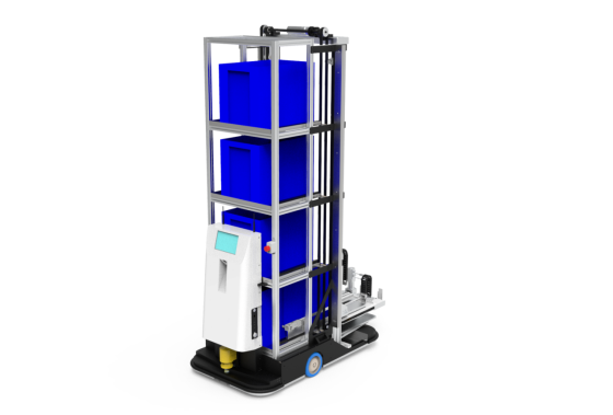 四、高柔性的货到人机器人,适用于不同高度的货位,实现自动完成升降、抓取料箱和搬运工作,以实现仓储自动化。