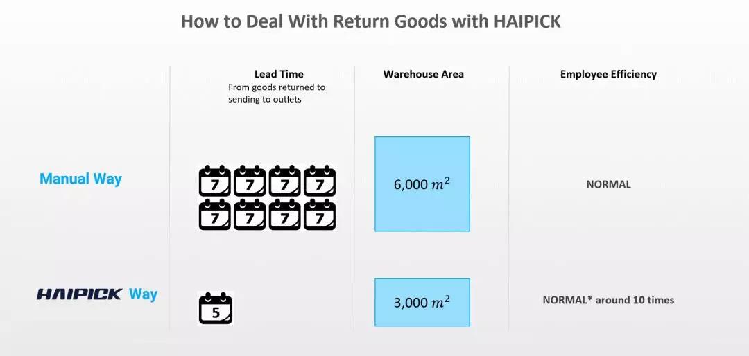 与此同时,以传统模式处理门店退货的弊端也在日益凸显,首先,企业通常需要6-8周来处理退货并再次发往门店,这意味着这些退货或将错过最佳的促销时机。第二,退货需要占用大量的存储空间,这无疑加大了仓储的运营成本。此外,人工处理退货通常会先根据品类对商品进行分拣再做入库处理,一方面需耗费更多人力,另一方面也降低了整体效率。