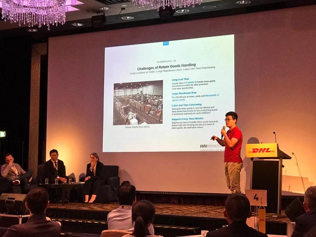 在DHL此次论坛上,海柔创新CEO陈宇奇分享了海柔创新自主研发的库宝系统HAIPICK如何帮助企业快速高效地完成退货处理流程。